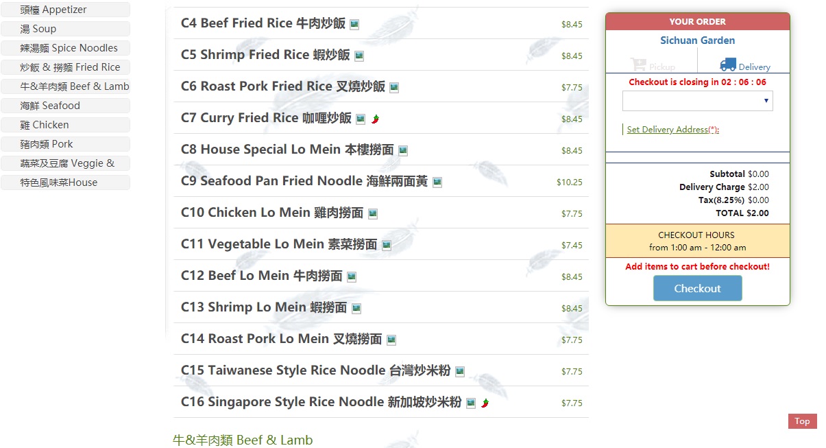 Sichuan Garden - Hệ thống đặt món online cho nhà hàng.